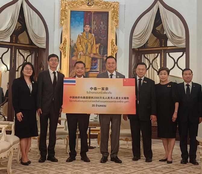 MGR Online - เอกอัครราชทูตจีนประจำประเทศไทยได้ส่งมอบความช่วยเหลือ ด้านมนุษยธรรมจากรัฐบาลจีนมูลค่า 20 ล้านหยวน ให้แก่นายกรัฐมนตรี เพื่อช่วยเหลือประชาชนไทยที่ได้รับผลกระทบจากความขัดแย้งบริเวณชายแดนไทย-กัมพูชา