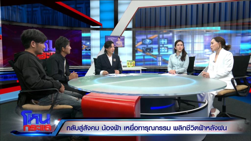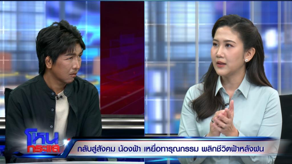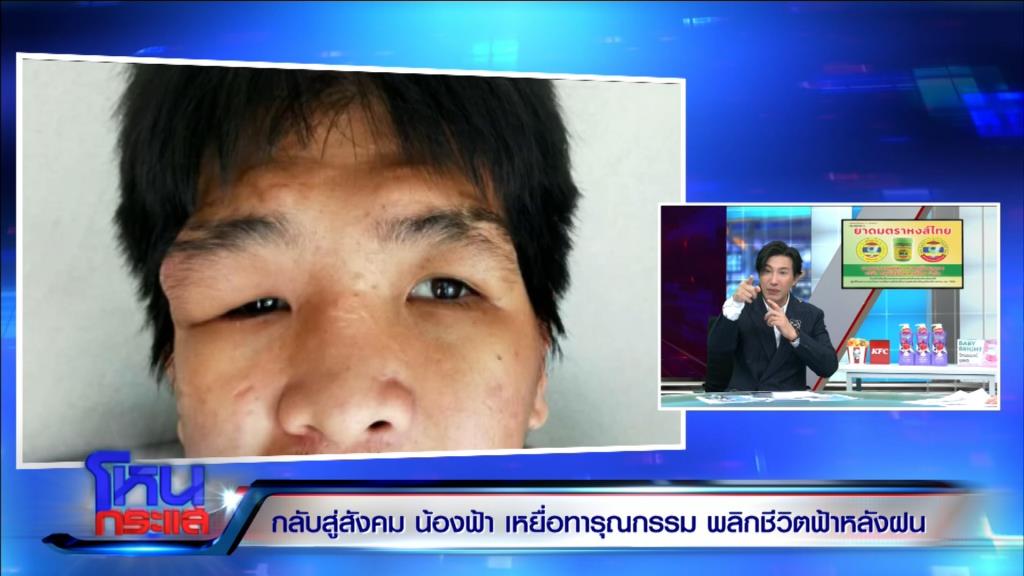 รายการโหนกระแส วันที่ 14 เม.ย. ดำเนินรายการโดย “หนุ่ม กรรชัย กำเนิดพลอย” ผลิตในนามบริษัท ดีคืนดีวัน จำกัด ออกอากาศทุกวันจันทร์-ศุกร์ เวลา 12.35 น. ทางช่อง 3 กดหมายเลข 33 สัมภาษณ์ “น้องฟ้า” อดีตลูกจ้างที่ถูกนายจ้างทารุณกรรมจนร่างกายผิดรูป ผ่านมา 4 ปี ได้รับการผ่าตัดแก้ไขใบหน้าและร่างกายถึง 11 ครั้ง วันนี้ฟ้ามีชีวิตใหม่ได้กลับคืนสู่สังคม มาพร้อม “จร” พี่ชาย และ พญ.กันยาภา ฤกษ์งาม ศัลยแพทย์ตกแต่งและเสริมสร้าง รวมทั้ง ปุ้ย พิมลวรรณ