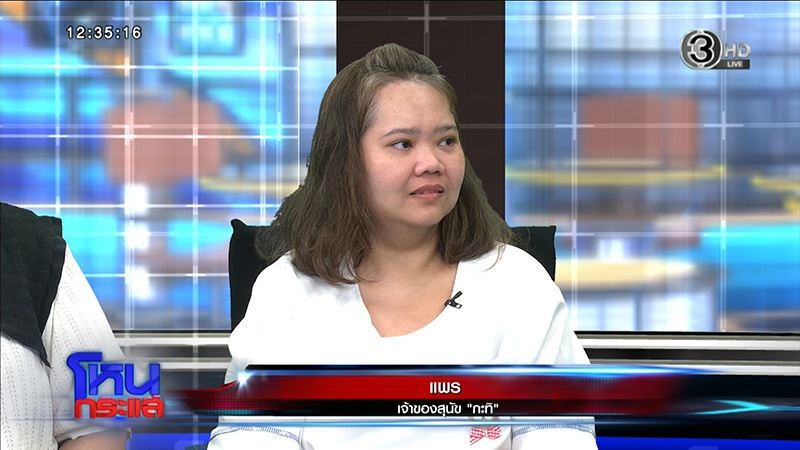 รายการโหนกระแส วันที่ 22 เม.ย. ดำเนินรายการโดย “หนุ่ม กรรชัย กำเนิดพลอย” ผลิตในนามบริษัท ดีคืนดีวัน จำกัด ออกอากาศทุกวันจันทร์-ศุกร์ เวลา 12.35 น. ทางช่อง 3 กดหมายเลข 33 สัมภาษณ์ แพร เจ้าของสุนัข , เพชร น้องสาว ,จ่าคิงส์ แตงทิม, ทนายพัฒน์ อนุสรณ์ อะสุระพงษ์