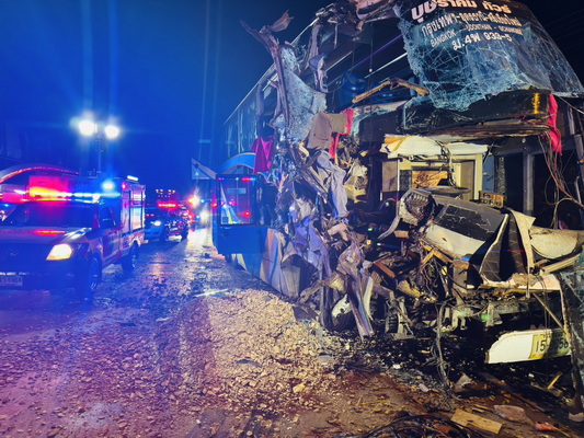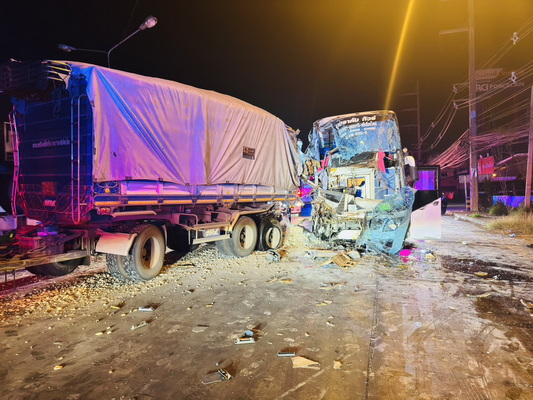 ศูนย์ข่าวขอนแก่น - เกิดอุบัติเหตุรถทัวร์ศรีเชียงใหม่-กรุงเทพฯ ชนท้ายรถพ่วงบรรทุกหิน ใกล้แยกท่าพระ ขอนแก่น เหตุรถพ่วงเปลี่ยนเลนกะทันหัน ทำให้รถทัวร์เบรกไม่อยู่ชนท้ายรถพ่วงอย่างจัง มีผู้บาดเจ็บรวมกว่า 27 ราย กระจายส่งรักษาตัวโรงพยาบาลใกล้จุดเกิดเหตุ