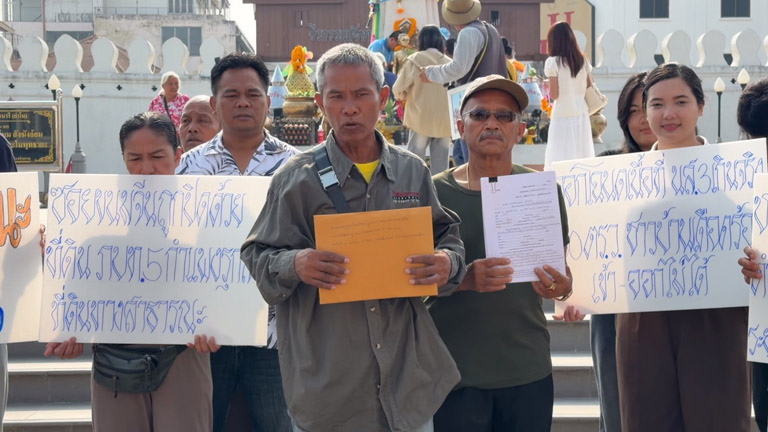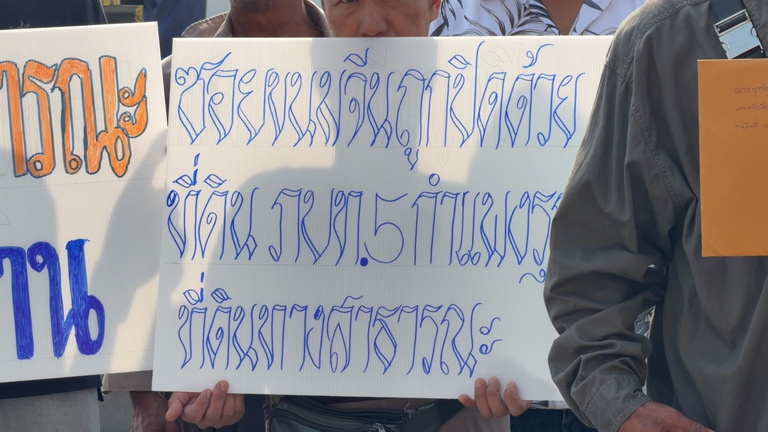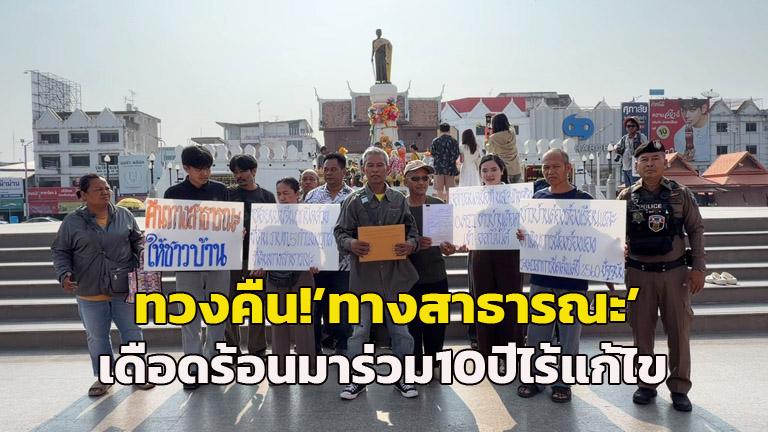 (คลิป)เดือดร้อนมาร่วม 10 ปี! ชาวบ้านโคราชชูป้ายประท้วงหน้าย่าโม ทวงคืน “ทางสาธารณะ” ถูกออกโฉนดฮุบปิดกั้น เข้า-ออกไม่ได้ ไร้แก้ไข