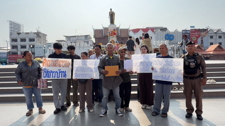 เช้าวันนี้ ( 27 เม.ย. 69 ) ที่บริเวณลานอนุสาวรีย์ท้าวสุรนารี (ย่าโม) ตำบลในเมือง อำเภอเมืองนครราชสีมา จังหวัดนครราชสีมา นายจักรกฤษณ์ เถาว์แล แกนนำชาวบ้านตำบลภูหลวง อำเภอปักธงชัย จังหวัดนครราชสีมา พร้อมด้วยชาวบ้านกว่า 20 คน รวมตัวถือป้ายข้อความ “คืนทางสาธารณะให้ชาวบ้าน”, “ซอยขนมจีนถูกปิดด้วยที่ดิน ภบท.5”, “กำแพงรุกล้ำที่ดินทางสาธารณะ”, “ออกโฉนด น.ส.3 เกินจริง 30 ตร.ว.” และ “ชาวบ้านเดือดร้อน เข้า-ออกไม่ได้” มาเรียกร้องความเป็นธรรม พร้อมเตรียมนำเอกสารหลักฐานยื่นต่อสำนักงาน ป.ป.ช. จังหวัดนครราชสีมา เพื่อติดตามความคืบหน้าคดี