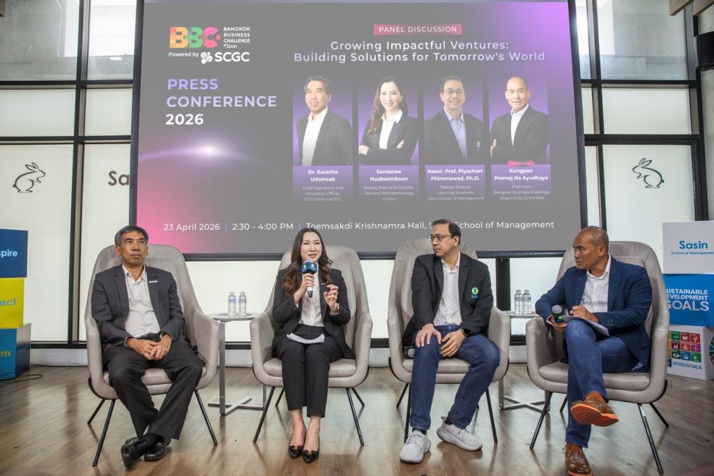 เมื่อวันที่ 23 เมษายน 2569 – สถาบันบัณฑิตบริหารธุรกิจ ศศินทร์ แห่งจุฬาลงกรณ์มหาวิทยาลัย (Sasin School of Management) ผู้จัดงานการแข่งขันประกวดแผนธุรกิจ Bangkok Business Challenge 2026 Powered by SCGC ซึ่งได้รับการสนับสนุนหลักอย่างเป็นทางการจาก เอสซีจี เคมิคอลส์ หรือ SCGC ผู้นำธุรกิจพอลิเมอร์และโซลูชันครบวงจรเพื่อความยั่งยืน ธนาคารกสิกรไทย (KBank) และบริษัท บุญรอดบริวเวอรี่ จำกัด ร่วมด้วย Ecosystem Partner ได้แก่ 2C2P, มูลนิธิแม่ฟ้าหลวง ในพระบรมราชูปถัมภ์, สำนักงานจัดการทรัพย์สิน จุฬาลงกรณ์มหาวิทยาลัย, บริษัท สราญรมย์เคเทอริง จำกัด และเครือข่ายแอสเพนเพื่อผู้ประกอบการเพื่อการพัฒนา เดินหน้าจัดเวทีการแข่งขันสำหรับนิสิต-นักศึกษาจากทั่วโลกได้ร่วมแสดงศักยภาพเป็นปีที่ 24 นำเสนอแนวคิดและแผนธุรกิจภายใต้แนวคิด “Growing Impactful Ventures: Building Solutions for Tomorrow’s World” มุ่งผลักดันไอเดียนวัตกรรมใหม่ที่ขับเคลื่อนด้วยแนวคิดด้านความยั่งยืน (Sustainability) และนวัตกรรมสีเขียว (Green Innovation) ซึ่งไม่เพียงสร้างการเติบโต แต่ต้องสร้างผลกระทบเชิงบวก