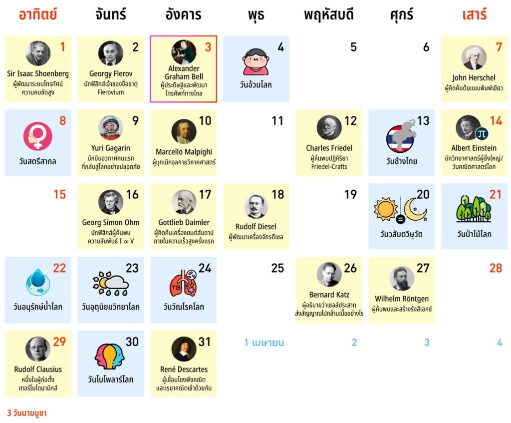 อัลเบิร์ต ไอน์สไตน์ หนึ่งในนักวิทยาศาสตร์ผู้ทรงอิทธิพลที่ได้ฝากผลงานการค้นคว้าที่น่าจดจำและให้คนรุ่นหลังได้ศึกษาเรียนรู้ และในช่วงเดือนมีนาคมอันถือเป็นช่วงวันคล้ายวันเกิดของเขา (14 มีนาคม) จึงทำให้เดือนนี้ถือเป็นเดือนที่มีความหมายพิเศษสำหรับโลกวิทยาศาสตร์และคณิตศาสตร์ ที่จะได้ระลึกถึงหนึ่งในนักฟิสิกส์ที่ยิ่งใหญ่ที่สุดตลอดกาล ผู้พัฒนาทฤษฎีสัมพัทธภาพและสมการสมดุลมวล - พลังงาน