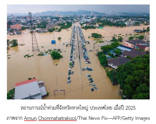 เหตุการณ์น้ำท่วมใหญ่ที่หาดใหญ่เมื่อปี 2025 นับเป็นความหายนะจากน้ำที่รุนแรงที่สุดสำหรับประเทศไทย ซึ่งเกิดขึ้นในเดือนพฤศจิกายน เพราะมีฝนตกหนัก 83 เซนติเมตร ภายในเวลา 3 วัน ทำให้น้ำในบางบริเวณลึก 3-4 เมตร และบางบริเวณลึกถึง 9 เมตร มีคนเสียชีวิต 145 คน การสื่อสารถูกตัดขาดหมด