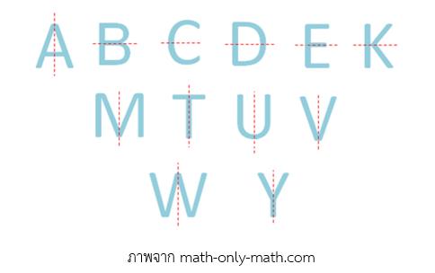ตัวอย่างสมบัติสมมาตรของตัวอักษร A, B, C, D ถึง Y