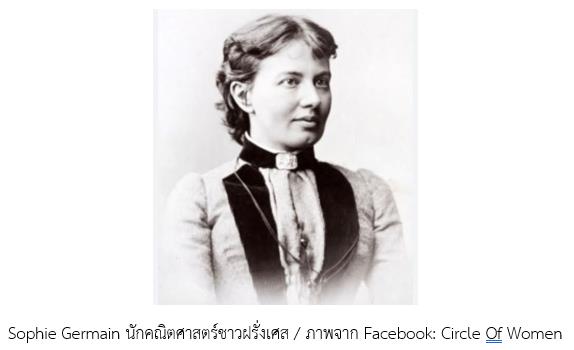ด้าน Sophie Germain (1776-1831) นักคณิตศาสตร์ฝรั่งเศส ผู้ได้ศึกษาเรียนรู้วิธีการคำนวณด้วยตนเอง จากการอ่านตำราของ Newton, Archimedes, Euler และได้เขียนผลงานวิจัยคณิตศาสตร์มากมาย โดยใช้ชื่อปลอมว่า Monsieur Le Blanc ของผู้ชาย เพื่อให้วงการคณิตศาสตร์ยอมรับ ครั้นเมื่อ Karl Gauss (1777-1855) และ Josef Lagrange (1736-1813) รู้ความจริงว่า เธอเป็นผู้หญิง ทั้งสองก็ได้เอ่ยปากชมว่า เธอเป็นคนเก่งและกล้ามาก ผลงานที่สำคัญชิ้นหนึ่งของเธอ คือ การสามารถพิสูจน์ได้ว่าสมการ x^n + y^n = z^n ซึ่งเป็นทฤษฎีบทสุดท้ายของ Fermat นั้น จะไม่มีค่า x, y, z ที่เป็นจำนวนเต็มบวก ถ้า n มีค่ามากกว่าหรือเท่ากับ 3 และเธอก็สามารถพิสูจน์ได้ว่า ทฤษฎีบทนี้เป็นจริง ในกรณีที่ n เป็นจำนวนเฉพาะคี่ ที่มีค่าน้อยกว่า 107 นอกจากนี้เธอก็ยังมีผลงานทางด้านทฤษฎีความยืดหยุ่นของของแข็งด้วย แม้ทฤษฎีความยืดหยุ่นของเธอจะมีส่วนในการสร้างหอ Eiffel แต่ชื่อของเธอก็มิได้ถูกจารึกบนหอ ซึ่งมีแต่ชื่อของวิศวกร นักวิทยาศาสตร์ และนักคณิตศาสตร์ทั้ง 72 คน เป็นผู้ชายทั้งหมด