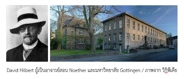 สำหรับ Emmy Noether นั้น เธอเกิดที่เมือง Erlangen ประเทศเยอรมนี ในครอบครัวที่มีฐานะดี และได้เข้าเรียนคณิตศาสตร์ที่มหาวิทยาลัย Gottingen ซึ่งเป็นมหาวิทยาลัยเดียวที่ยอมรับสตรีให้เข้าเรียนคณิตศาสตร์ในสมัยนั้น เธอได้เป็นลูกศิษย์ของ Felix Klein , David Hilbert (1862-1943) และ Hermann Minkowski (1864-1909) เมื่อสำเร็จการศึกษา เธอได้ทำงานที่สถาบัน Mathematical Institute of Erlangen ในฐานะอาจารย์ช่วยสอนของอาจารย์ชาย เป็นเวลานานถึง 7 ปี โดยไม่ได้รับเงินเดือนเลย