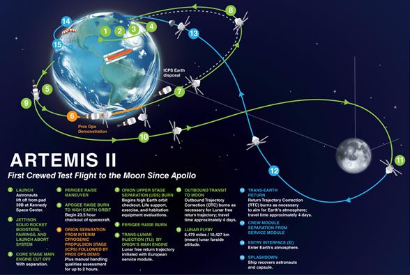 และการเดินทางของภารกิจ Artemis 2 ในครั้งนี้ ยังได้มี 4 นักบินอวกาศร่วมเดินทางไปด้วย ได้แก่ นักบินอวกาศ รีด ไวส์แมน (Reid Wiseman) ผู้บัญชาการภารกิจ (Mission Commander) , นักบินอวกาศ วิคเตอร์ โกลเวอร์ (Victor Glover) , นักบินอวกาศ คริสตินา คอช (Christina Koch) และ นักบินอวกาศ เจเรมี แฮนเซน (Jeremy Hansen) ถือเป็นภารกิจการนำมนุษย์เดินทางกลับไปเยือนดวงจันทร์ได้สำเร็จอีกครั้งในรอบกว่า 50 ปี นับตั้งแต่ภารกิจ Apollo 17 ที่เป็นเที่ยวบินสำรวจดวงจันทร์ครั้งสุดท้ายเมื่อปี 1972