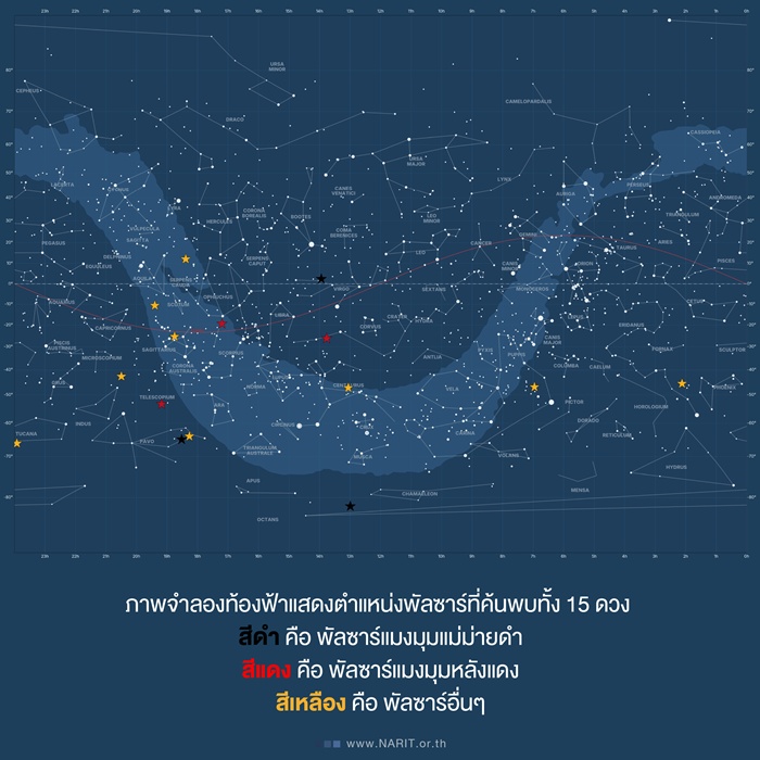 ดร. ติณณ์ ทองมีอาคม นักดาราศาสตร์ สถาบันวิจัยดาราศาสตร์แห่งชาติ (องค์การมหาชน) หรือ NARIT ร่วมกับ นักดาราศาสตร์นานาชาติ กลุ่ม Transients and Pulsars with MeerKAT (TRAPUM) ใช้กล้องโทรทรรศน์วิทยุ MeerKAT ค้นพบพัลซาร์ใหม่ 15 ดวง จากการสำรวจแหล่งกำเนิดรังสีแกมมาของกล้องโทรทรรศน์อวกาศเฟอร์มี (Fermi Gamma-ray Space Telescope) รวมถึงพบพัลซาร์มิลลิวินาทีชนิด “พัลซาร์แมงมุม” ซึ่งเป็นระบบดาวคู่หายาก นำมาใช้ศึกษาด้านฟิสิกส์ และวิวัฒนาการของดวงดาวในขั้นต่อไป อีกทั้งยังชี้ว่า ช่วงคลื่นวิทยุย่าน Ultra High Frequency (UHF) มีประสิทธิภาพในการค้นหาพัลซาร์ที่เกี่ยวข้องกับข้อมูลของเฟอร์มีมากกว่าย่าน L band วางรากฐานสำคัญสู่การสำรวจพัลซาร์ด้วยกล้องโทรทรรศน์วิทยุขนาดใหญ่อย่าง SKA ในอนาคต งานวิจัยดังกล่าวตีพิมพ์ใน วารสาร Monthly Notices of the Royal Astronomical Society เมื่อวันที่ 27 กุมภาพันธ์ 2569