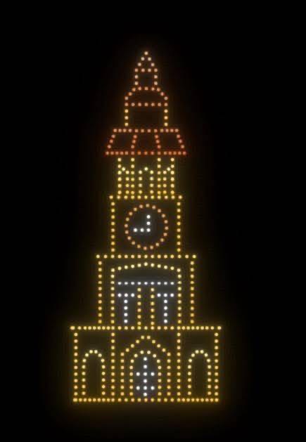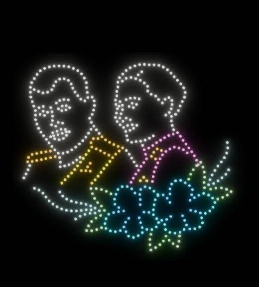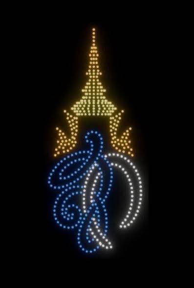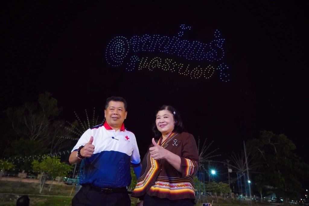 ถัดมาเป็นการแสดงโดรนแปรอักษร ถ่ายทอดสัญลักษณ์สำคัญของจังหวัดระนอง อาทิ