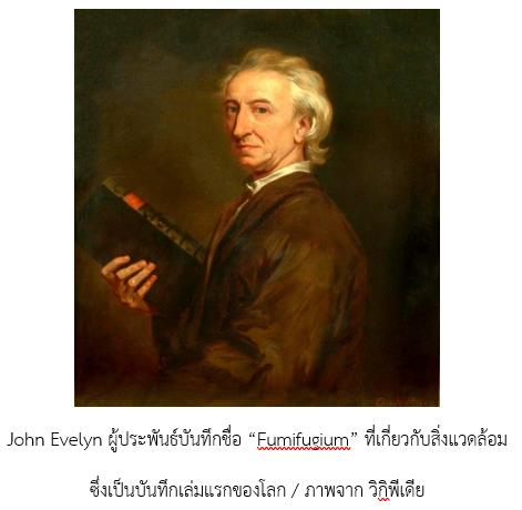 ในความเป็นจริง มนุษย์เราได้ตระหนักในความสำคัญของอากาศบริสุทธิ์มาเป็นเวลานานร่วม 750 ปีแล้ว คือ นับตั้งแต่เมื่อปี 1272 (สมัยอาณาจักรสุโขทัย) เมื่อกษัตริย์ Edward ที่ 1 แห่งอังกฤษ ทรงครองราชย์ในช่วงเวลานั้น อากาศในกรุงลอนดอนมีหมอกลงจัดบ่อย ทำให้ทัศนวิสัยมองเห็นได้ไม่ไกล เพราะผู้คนหุงหาอาหาร โดยใช้วิธีเผาฟืนที่ได้จากการตัดไม้ในป่า ทำให้ป่าไม้ลดพื้นที่ลงมาก ครั้นเมื่อมีการพบถ่านหินที่มีราคาถูก เพราะสามารถหาได้ง่าย และให้ความร้อนได้มากกว่าฟืน การสร้างเตาเผาถ่านหินในแทบทุกครัวเรือนในปี 1725 ได้ทำให้อากาศมีฝุ่นละอองมากถึง 130 ไมโครกรัม/ลูกบาศก์เมตร (ระดับปลอดภัยอยู่ที่ 40 ไมโครกรัม/ลูกบาศก์เมตร) เหตุการณ์นี้ทำให้ชาวลอนดอนรู้สึกเสมือนว่า ตนกำลังตกอยู่ในซุปถั่วลันเตา (pea soup) และประสบการณ์นี้ได้ทำให้นักประพันธ์ John Evelyn (1620–1706) ซึ่งเป็นหนึ่งในผู้จัดตั้งสมาคม Royal Society of London ได้เขียนบันทึกชื่อ “Fumifugium” เกี่ยวกับเรื่องหมอกนี้ ทำให้บันทึกนี้เป็นเอกสารเล่มแรกของโลกที่เขียนเกี่ยวกับสิ่งแวดล้อม ในหนังสือเล่มนั้น Evelyn ยังที่ทูลขอให้กษัตริย์ Edward ที่ 1 และรัฐสภาอังกฤษช่วยด้วย แต่ไม่มีใครตอบสนองการขอร้องนี้