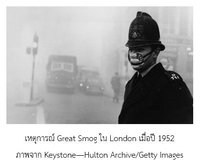 ครั้นเมื่อถึงปี 1952 ได้เกิดเหตุการณ์ Great Smog เป็นเวลา 5 วัน คือ ตั้งแต่วันที่ 5-9 ธันวาคม ปี 1952 ทำให้มีคนเสียชีวิต 10,000-20,000 คน เหตุการณ์นี้ได้ทำให้รัฐสภาอังกฤษออกกฎหมายอากาศสะอาดเป็นครั้งแรกของโลก