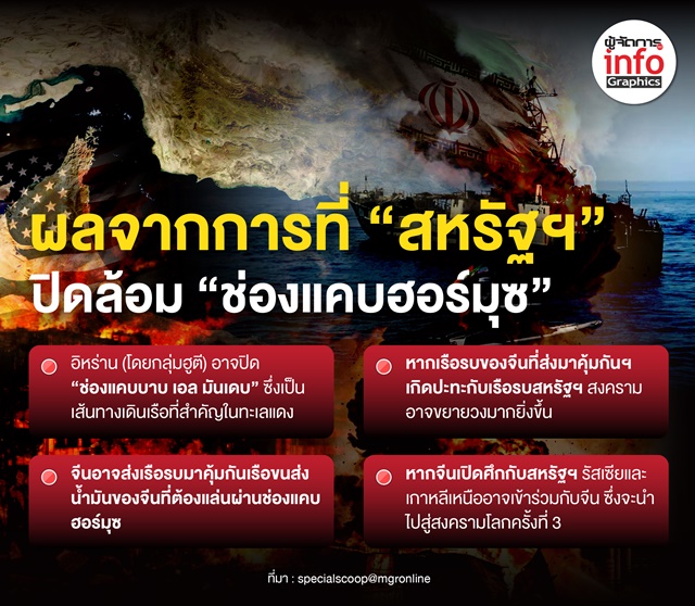 ส่วนผลกระทบทางด้านเศรษฐกิจนั้น “ดร.อัทธ์” มองว่า การที่สหรัฐฯปิดล้อมช่องแคบออร์มุซจะทำให้เศรษฐกิจโลกผันผวนมากยิ่งขึ้น เพราะช่องแคบฮอร์มุซจะถูกปิด 100% จากเดิมที่อิหร่านห้ามเฉพาะประเทศที่ยืนข้างสหรัฐฯไม่ให้ผ่านช่องแคบฮอร์มุซ น้ำมันและก๊าซธรรมชาติจากตะวันออกกลางยังสามารถส่งไปยังประเทศต่างๆได้บ้าง แต่เมื่อสหรัฐฯปิดล้อมช่องแคบฮอร์มุซไม่ให้เรือที่ออกจากอิหร่านผ่านได้ก็เท่ากับไม่มีเรือน้ำมันของประเทศใดผ่านช่องแคบดังกล่าวไปได้เลย อีกทั้งหากกลุ่มฮูตีซึ่งเป็นพันธมิตรของอิหร่านปิดช่องแคบ“บาบ เอล มันเดบ”ซึ่งเป็นจุดเชื่อมต่อสำคัญของการค้าโลก ก็จะส่งผลให้น้ำมันและก๊าซธรรมชาติที่เป็นแหล่งพลังงานที่จำเป็นทั้งต่อภาคอุตสาหกรรมและการดำรงชีพของประชากรโลกขาดแคลนอย่างหนัก และราคาพุ่งขึ้นไปอีก